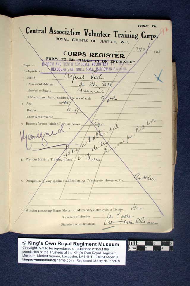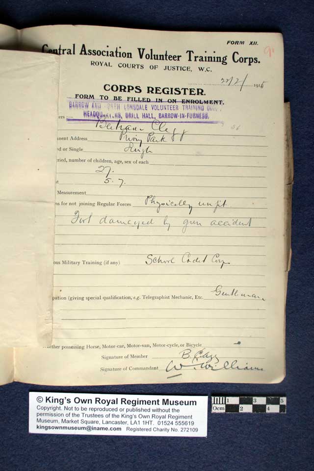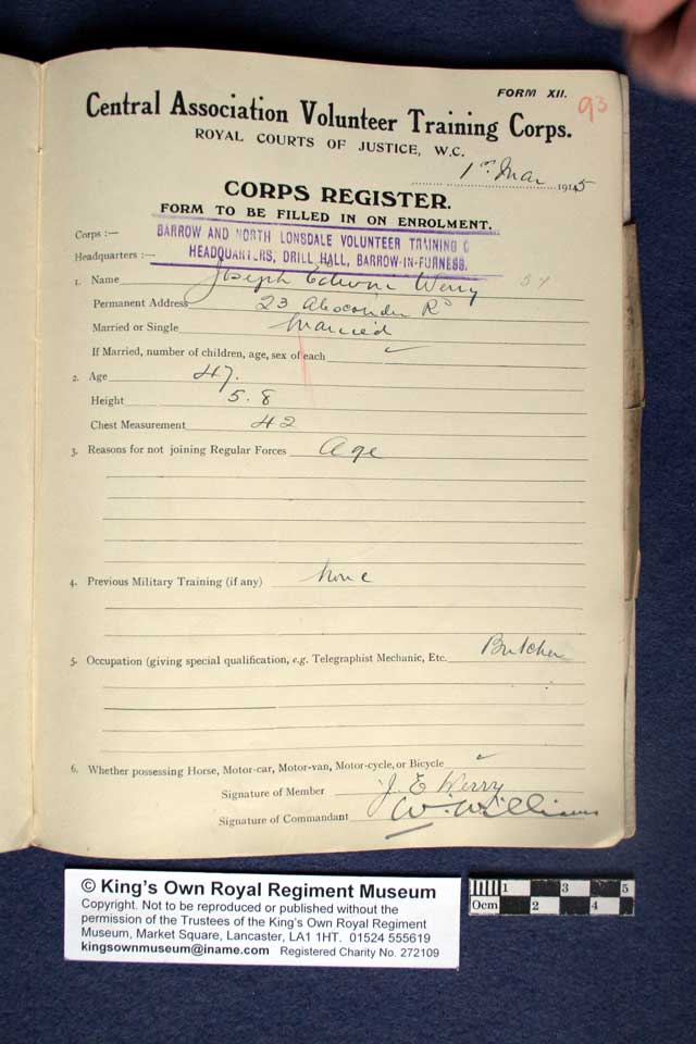 Collections - First World War - Volunteer Battalions Register of members of the Barrow and North Lonsdale Volunteer Training Corps Pages 91 to 95