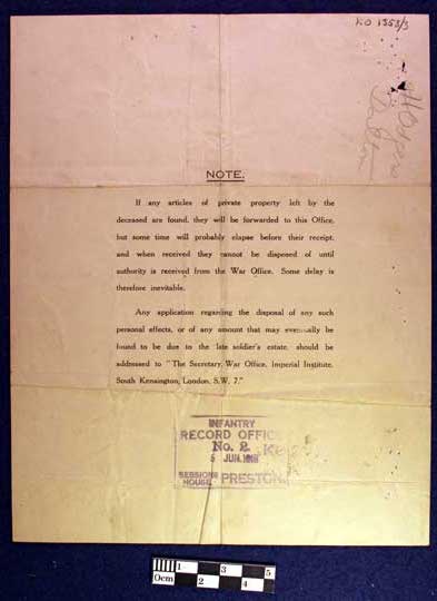 Department, dated 20 Dec 1918. Concerning the death of Private R