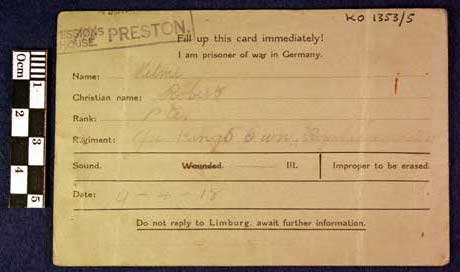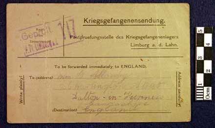 Prisoner of War Postcard sent to Mrs Allonby, 26 Hartington