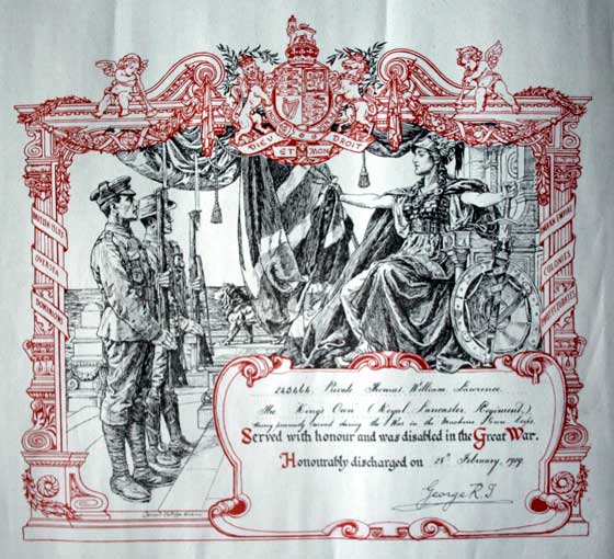 Soldiers of the Regiment Private Thomas William Lawrence Private Thomas William Lawrence, number 243464, King’s Own Royal Lancaster Regiment and Machine Gun Corps. Discharged 28th January 1919.