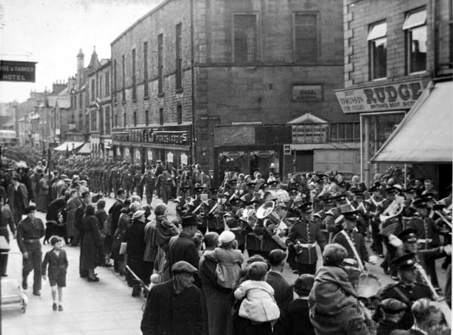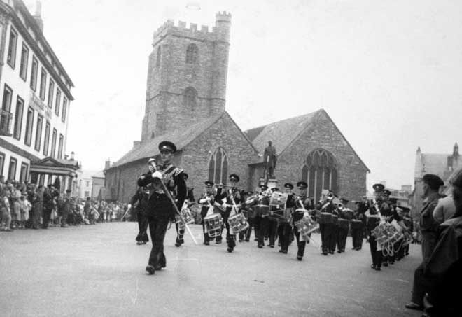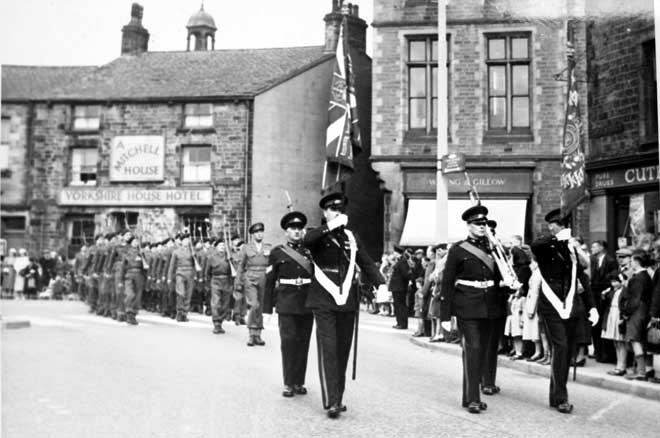 Captain Royle leading the parade through Lancaster, 1955. (Dated from