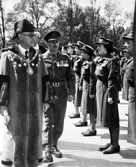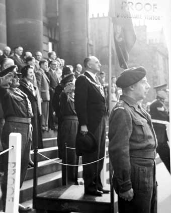 The Mayor of Lancaster, Home Guard Captain outside Town Hall circa 1945