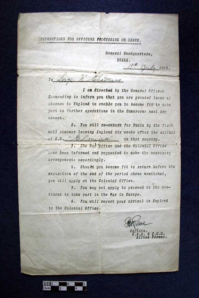 Instructions for Officers Proceeding on Leave, Duala, 1915