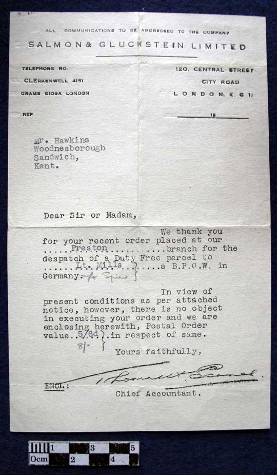 Letter, from Chief Accountant, Salmon and Gluckstein Limited, City Road,