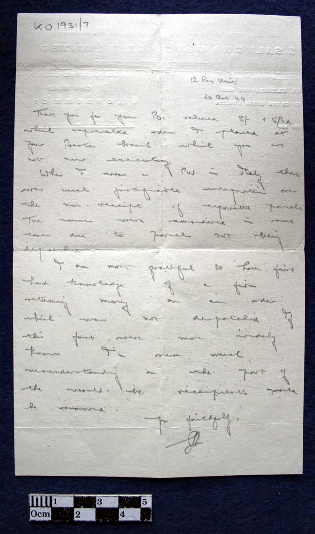 Handwritten letter on the rear dated 20 Oct 1944.