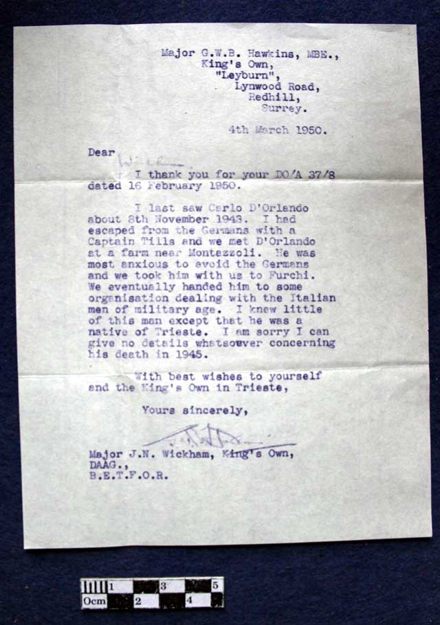 Trieste Force) dated 4 Mar 1950, concerning Carlo D’Orlando, who Hawkins