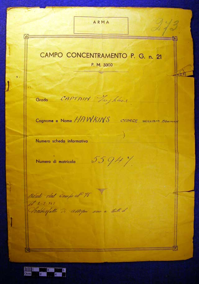 Italian Prisoner of War Camp Record Card for Captain G W B Hawkins,