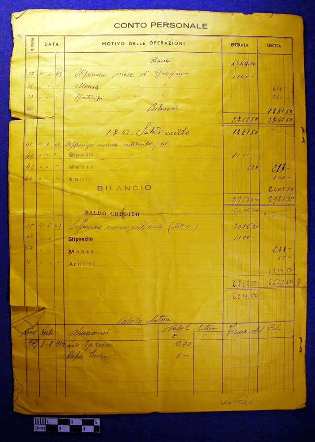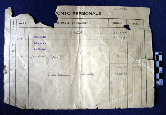 Italian Prisoner of War Camp Record Card, incomplete, damaged and torn.