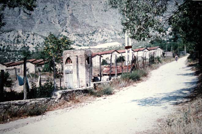 Outside Prisoner of War Camp, Sulmona, Italy. This camp site was used