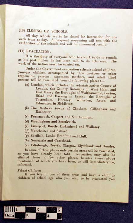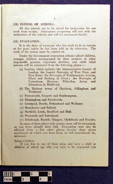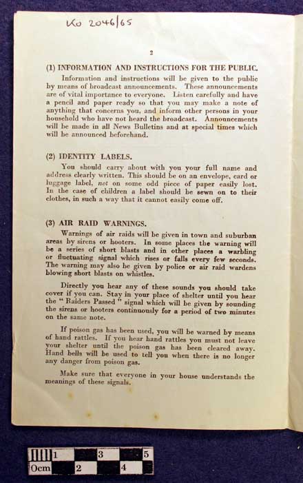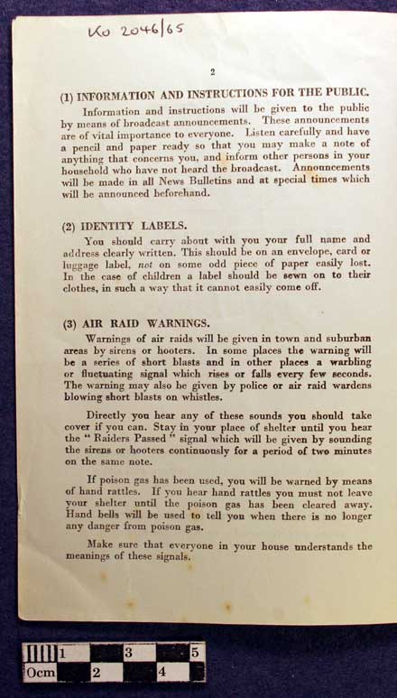 Collections - Archives Second World War - The Home Front Leaflet: War Emergency Information and Instructions, circa 1939.