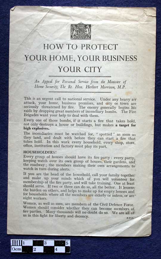Collections - Archives Second World War - The Home Front Leaflet: How to Protect Your Home, Your Business, Your City. Leaflet: How to Protect Your Home, Your Business, Your City. An appeal for Personal Service from the Minister of Home Security, the Rt. Hon. Herbert Morrison MP. Issued by the Ministry of Home Security, January 1941.
