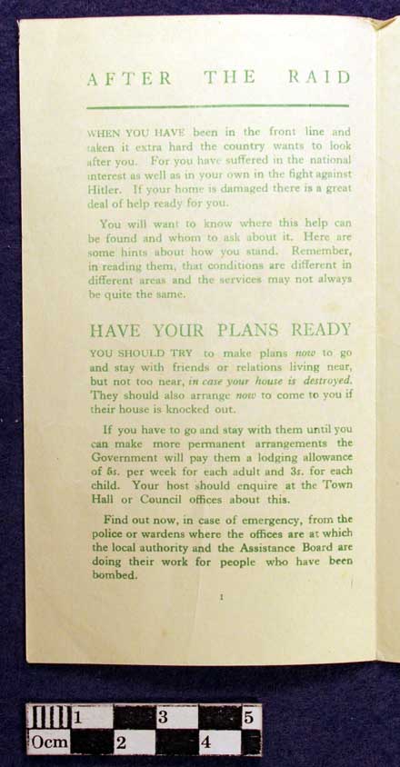 Collections - Archives Second World War - The Home Front Leaflet: After the Raid. Leaflet: After the Raid. Issued by the Ministry of Home Security. Provincial Edition. December 1940.