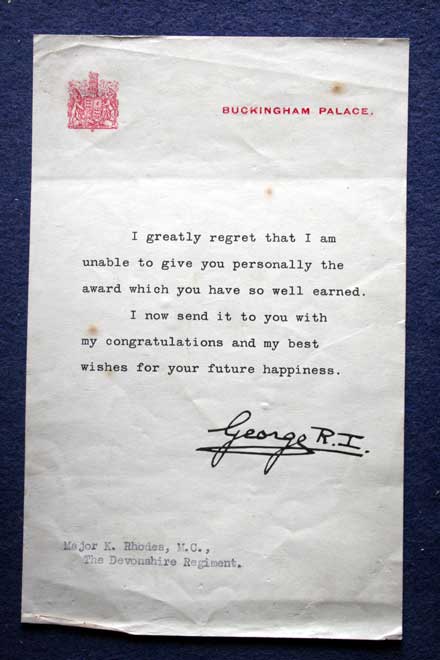 Letter from Buckingham Palace to Major Kenneth Rhodes, MC, about the