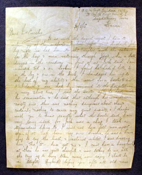 Mrs Crossley (mother of Private J Crossley) re the wounding of Private