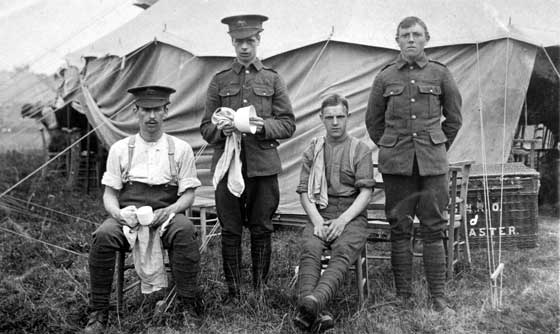 5th Battalion King’s Own Royal Lancaster Regiment Camp. Four soldiers.