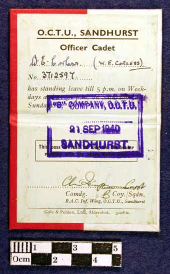 Permanent Pass - OCTU Sandhurst, Officer Cadet William Edward Corless,