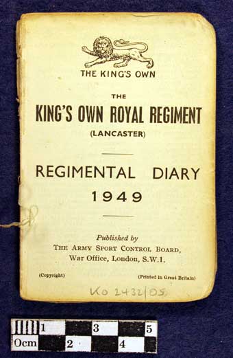 Part of King’s Own Regimental Diary 1949 in the name of Captain William