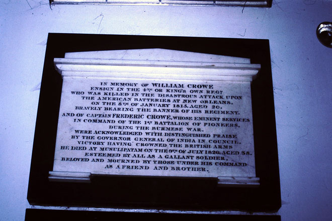 Soldiers of the Regiment Ensign William Crowe Ensign William Crowe was commissioned into the King's Own on 10th June 1813. He was killed at New Orleans on 8th January 1815.