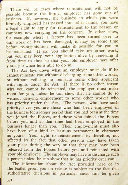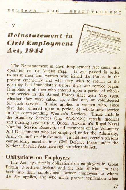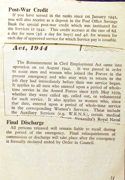 Collections - Second World War Release and Resettlement - An Explanation of your position and rights booklet