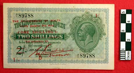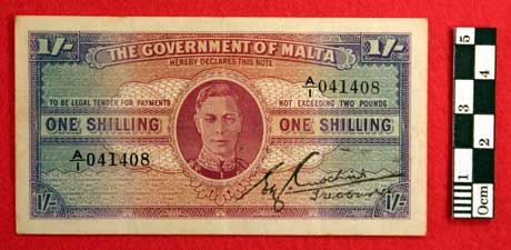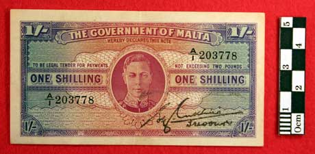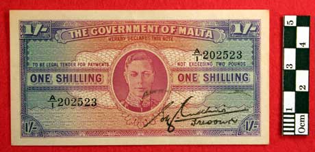 The Government of Malta One Shilling note from the collection of Private