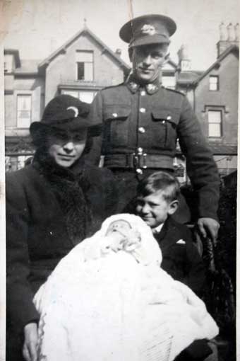 Battalion King’s Own Royal Regiment circa 1940 with wife, son and baby