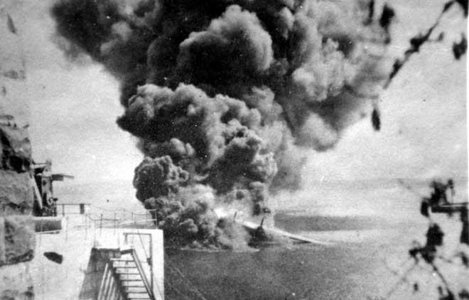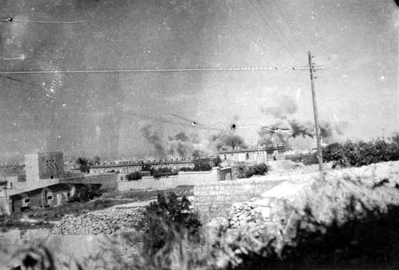 Bombing on Malta, burning buildings etc. Circa 1942-43