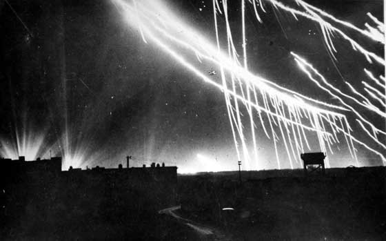Night time view of anti-aircraft fire over Malta