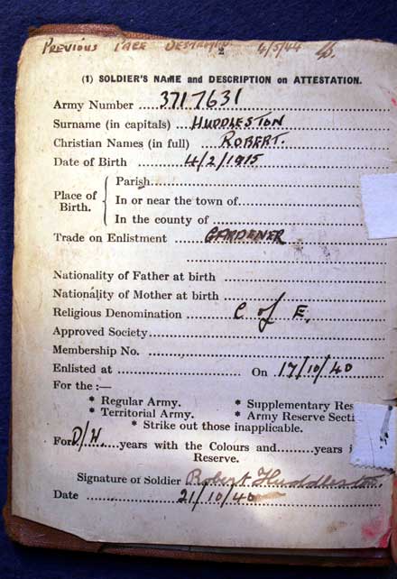 Private Robert Huddleston, number 3717631, enlisted on 17th October