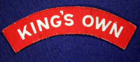 Photograph of printed cloth soldier title ‘King’s Own’ circa 1944/45