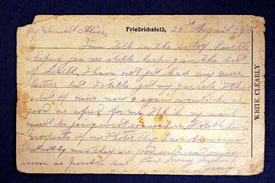 “A field card received by Mr and Mrs John Mason, of 50 Addlecroft,