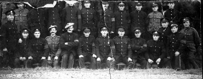Prisoner of War group, circa 1918. Private George Drinkall mason is
