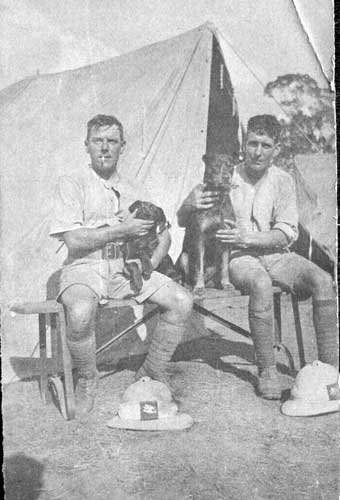 2nd Battalion, King’s Own, two soldiers outside tent with