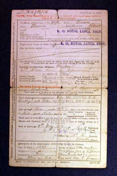 Collections - Archives - Soldiers Documents Certificate of Discharge, Army Form B 2079 Private William Patrick Brown