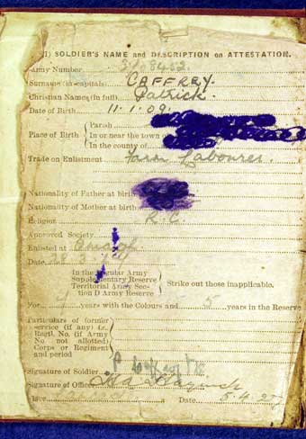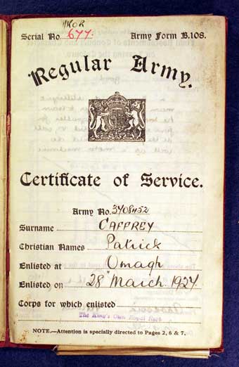 Soldiers Service and Pay Book of Private Patrick Caffrey, number