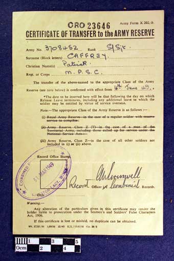 Sergeant Patrick Caffrey, number 3708452, King’s Own and MPSC.