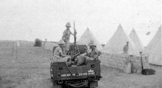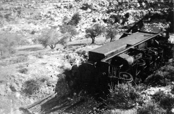 View of military vehicles from the distance, possibly Palestine or Egypt