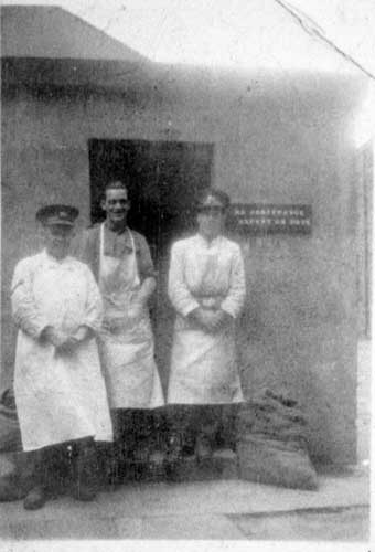 Three King’s Own soldiers in aprons, outside a cookhouse? circa 1930s