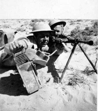 Truck of the 2nd King’s Own with three soldiers and Bren Gun, 1930s,