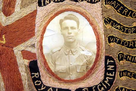 Collections - Souvenirs Regimental Colours This example is a little different from many of the others in the museum's collection in that it contains the space for the photograph of a soldier.