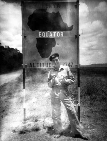Regiment, 1958/59, alongside the Equator sign, Kenya.