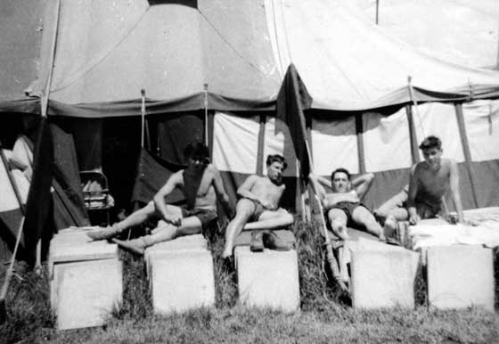 Outside tent in Kenya, Bob Dudley, Dick Baxter, Dick Liver and Private