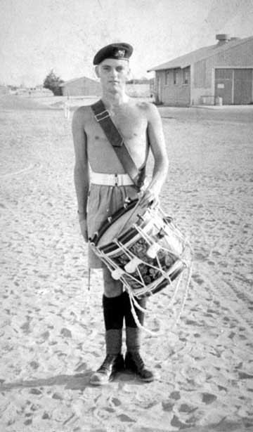 1958/59. Posing with drum in Aden, although he was not a member of the