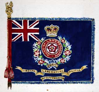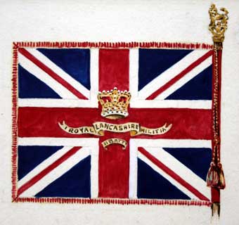 Regimental History Colours 1880 2nd Battalion, 1st Royal Lancashire Militia. Presented by Lady Constance Stanley at Lancaster on 21st July 1880. Carried by 4th (Militia) Battalion, King’s Own and laid up in the Regimental Chapel on 15th July 1905.