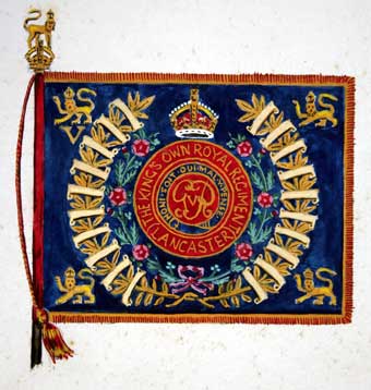 Regimental History Volunteer, Territorial, Militia and Special Reserve Battalions Colours 1909 - 5th TF Battalion, King's Own Royal Lancaster Regiment. 5th (Territorial) Battalion King’s Own. Presented by HM King Edward VII at Knowsley on 5th July 1909. Gift of Lady Moira Cavendish. Refurbished in 1924 and laid up in the Regimental Chapel on 28th April 1963.