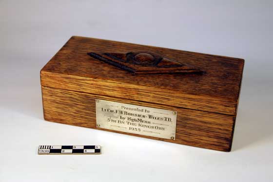 Collections - Regimental Silver & Presentations Wooden cigarette box to Lieutenant Colonel F W Boissier-Wyles TD
