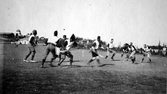 Hockey versus Royal Scots Fusiliers. The Doctor walking into camera. May