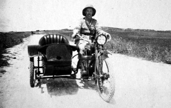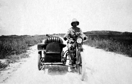 Jones with motorcycle on Kutehuk Road, Jun 1920.
