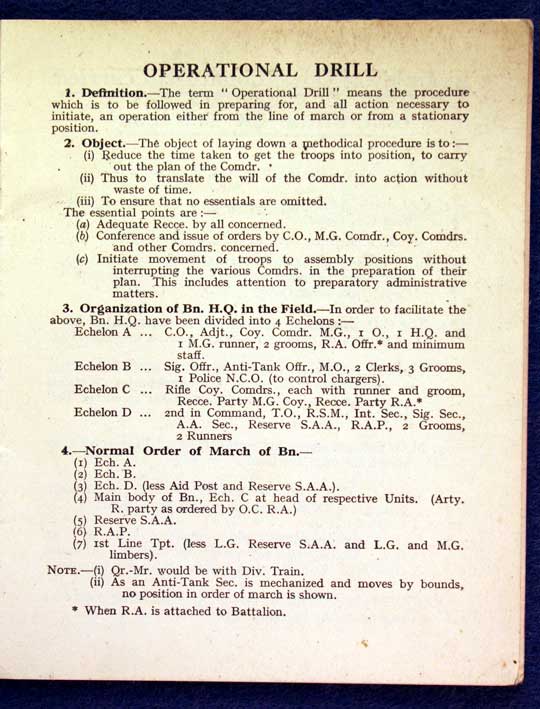 Tactical Training Memorandum, 5th Battalion, King’s Own Royal Regiment, circa 1930s.