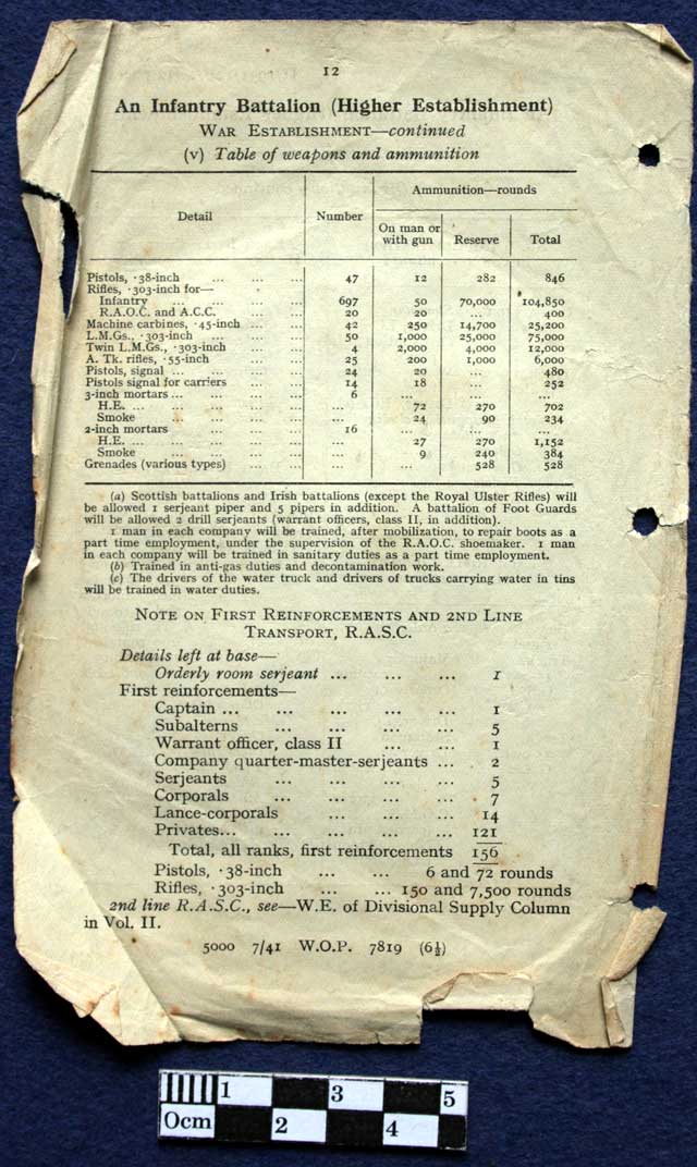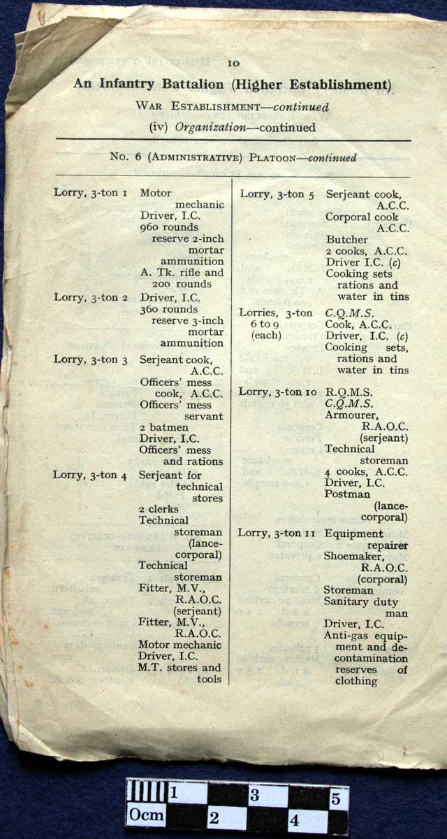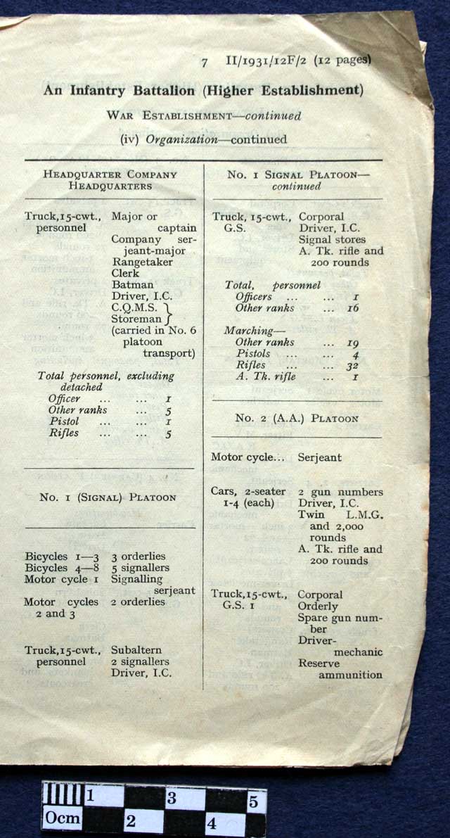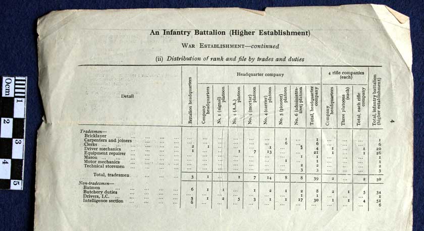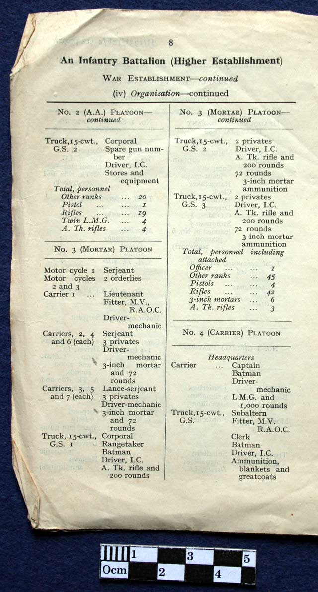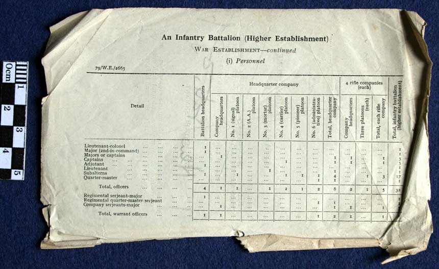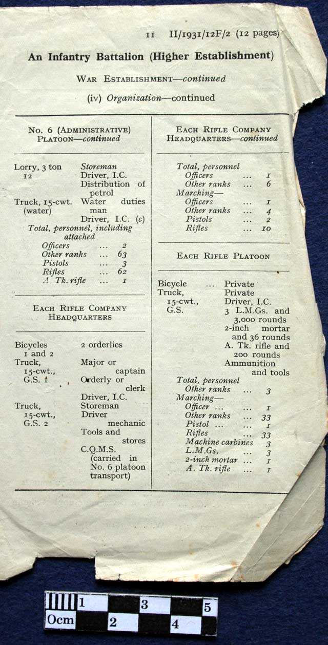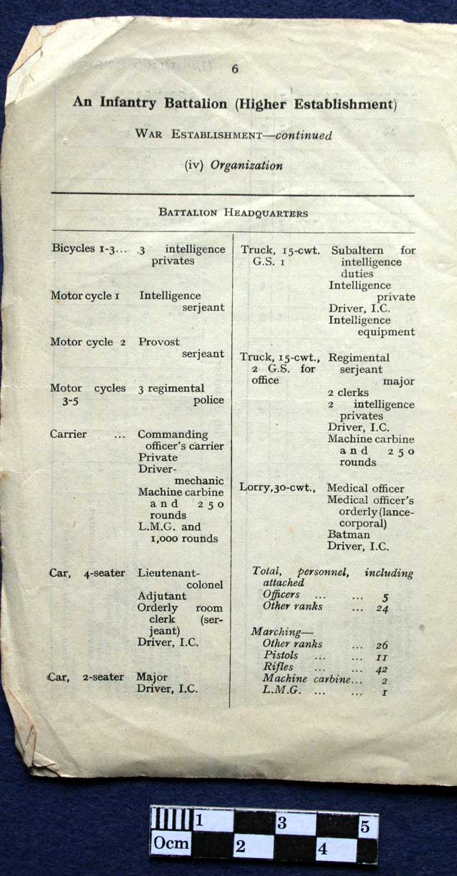 An Infantry Battalion (Higher Establishment) June 1941. War Establishment Strength