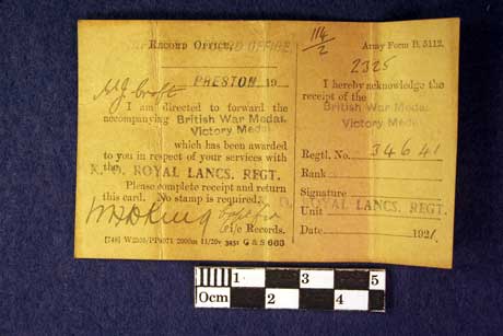 Army Form B5112 Receipt for British War and Allied Victory Medals issued